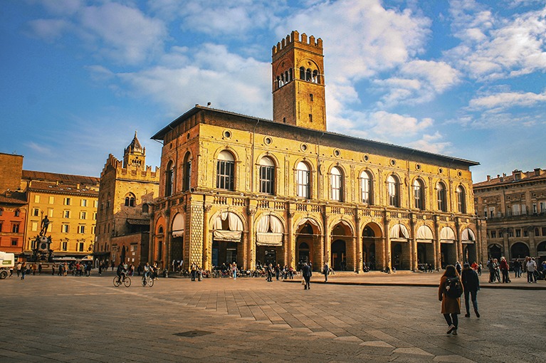 Comparência no aeroporto três horas antes da partida para assistência nas formalidades de embarque. Partida em voo regular com destino a Bolonha, capital da região de Emília-Romagna. Chegada, desembarque e continuação para o centro histórico de Bolonha, um dos mais bem conservados do mundo. Tempo livre para almoço. Visita ao centro histórico no qual destacamos a Praça Malpighi, a Praça Nettuno com os seus monumentos medievais e renascentistas, o Palazzo Comunale e a Basílica de San Petronio. Destaque ainda para a sua Universidade, considerada por vários historiadores como a mais antiga da Europa (visitas exteriores). Tempo livre para atividades de carácter pessoal. Jantar. Alojamento em Hotel 4*.