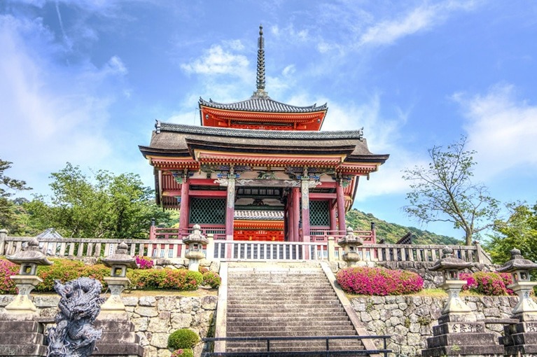 Pequeno-almoço no hotel. Dia dedicado às visitas pela cidade de Quioto, rodeada por montanhas e inúmeras belezas naturais, é considerada um dos berços da cultura japonesa visível nos dias de hoje. Visita ao Templo Kiyomizudera, Património Mundial da UNESCO. Passagem pelo Mercado de Nishik. Conhecido como a “Cozinha de Quioto”, é famoso pelos seus stands que vendem uma variedade de produtos alimentares e artigos relacionados com a gastronomia japonesa. Terminaremos com a visita ao Templo Ryoanji, famoso por seu jardim zen minimalista. Almoço entre as visitas. Jantar. Alojamento.