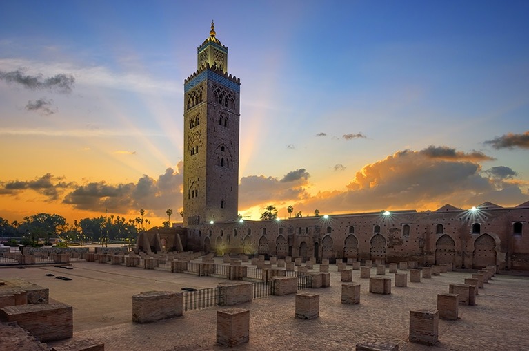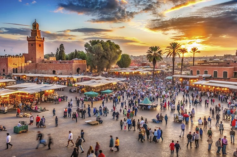 2º DIA – Pequeno-almoço. Visita a RABAT, rica em história, cultura e arquitetura, além de ser um importante centro político e económico de Marrocos. Visita ao Mausoléu de Mohammed V, lugar onde descansam três membros da família real da dinastia Alaouite. Destaque também para a Torre Hassan e o Palácio Real, atual residência do monarca. De seguida, panorâmica pelo centro moderno de Rabat. Almoço no hotel. Viagem até MARRAKECH. Chegada ao hotel, check-in e jantar. Após o jantar, visita à Praça Jemaa el-Fnaa, um verdadeiro “espetáculo ao ar livre”. Nela se reúnem diversos grupos folclóricos do país, assim como contadores de histórias, encantadores de serpentes, etc. Alojamento.